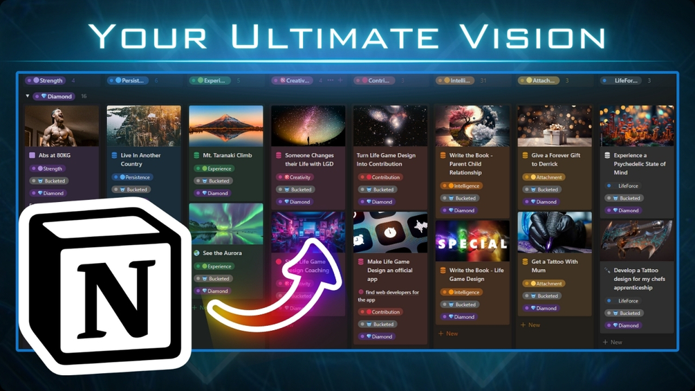 Notion Ultimate Vision Board + Gamified Course - Life Game Design
