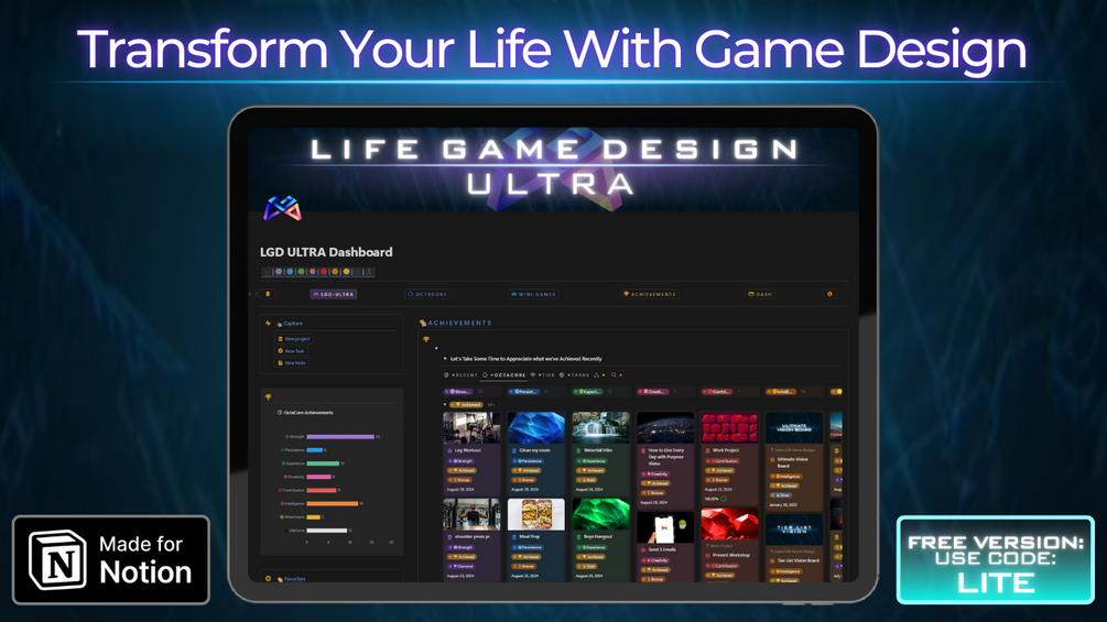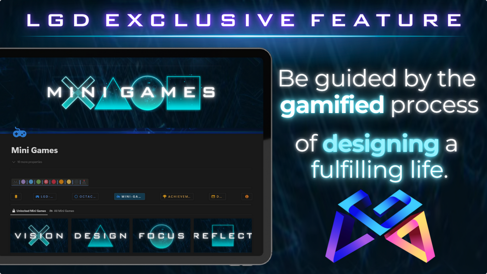 - Life Game Design is the only Notion template that incorporates game design principles to make self-improvement engaging and rewarding. It includes frameworks like Achievements, Mini Games, and the OctaCore Framework, and also comes with the world's first gamified Notion tutorial course!